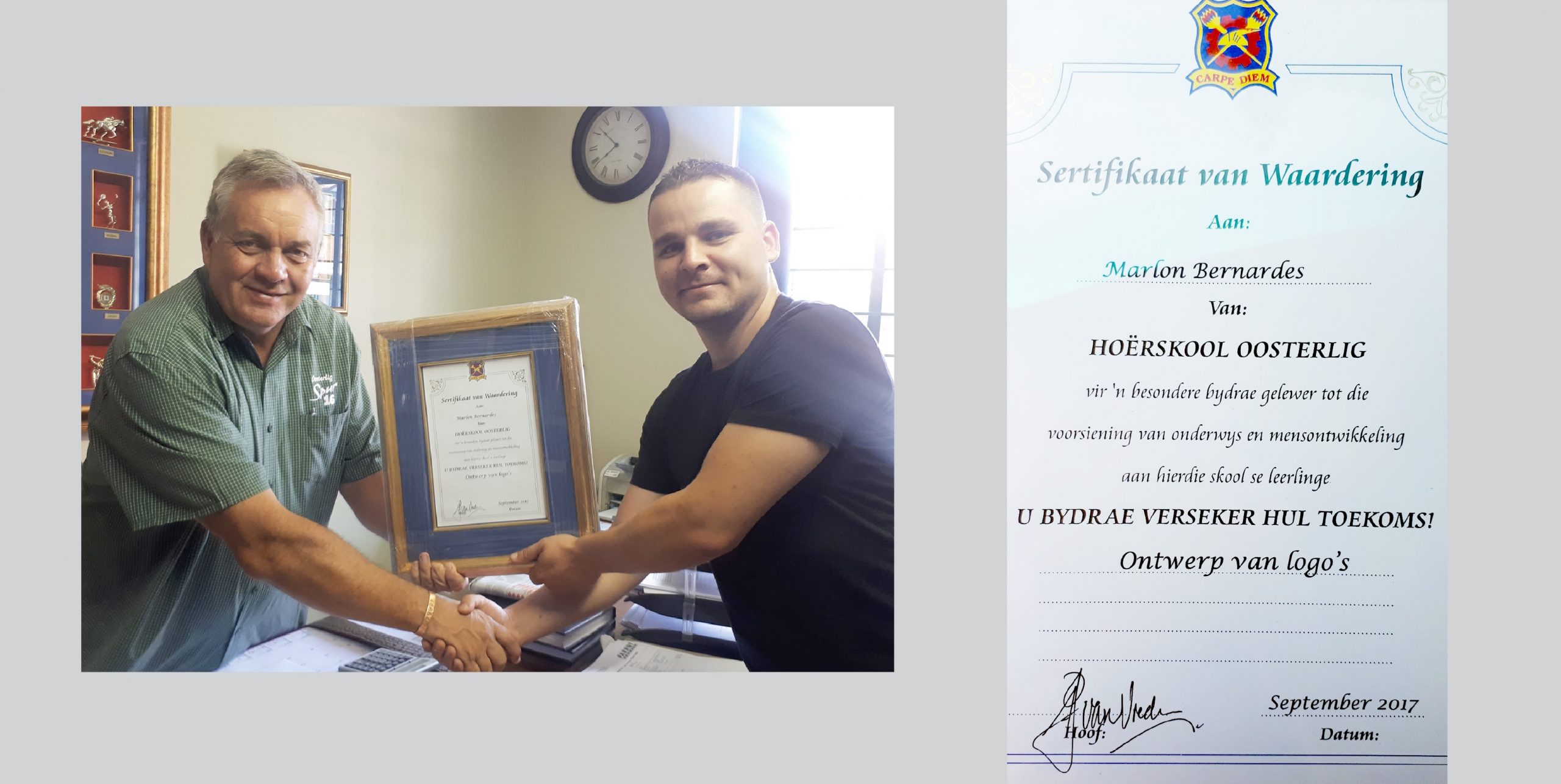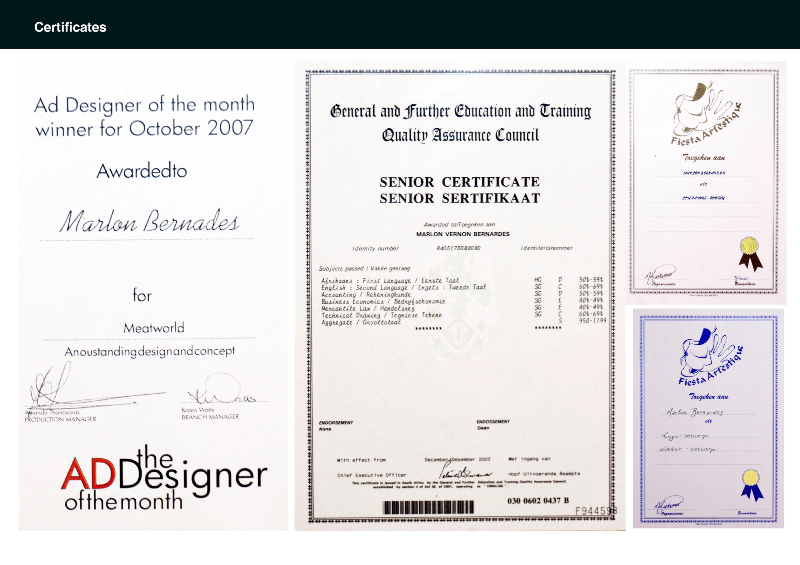 National Diploma: Graphic Design (2003-2004, Ekurhuleni East Campus) Subjects: Drawing, History of Art, Graphic Processes, Graphic Design (Distinction)