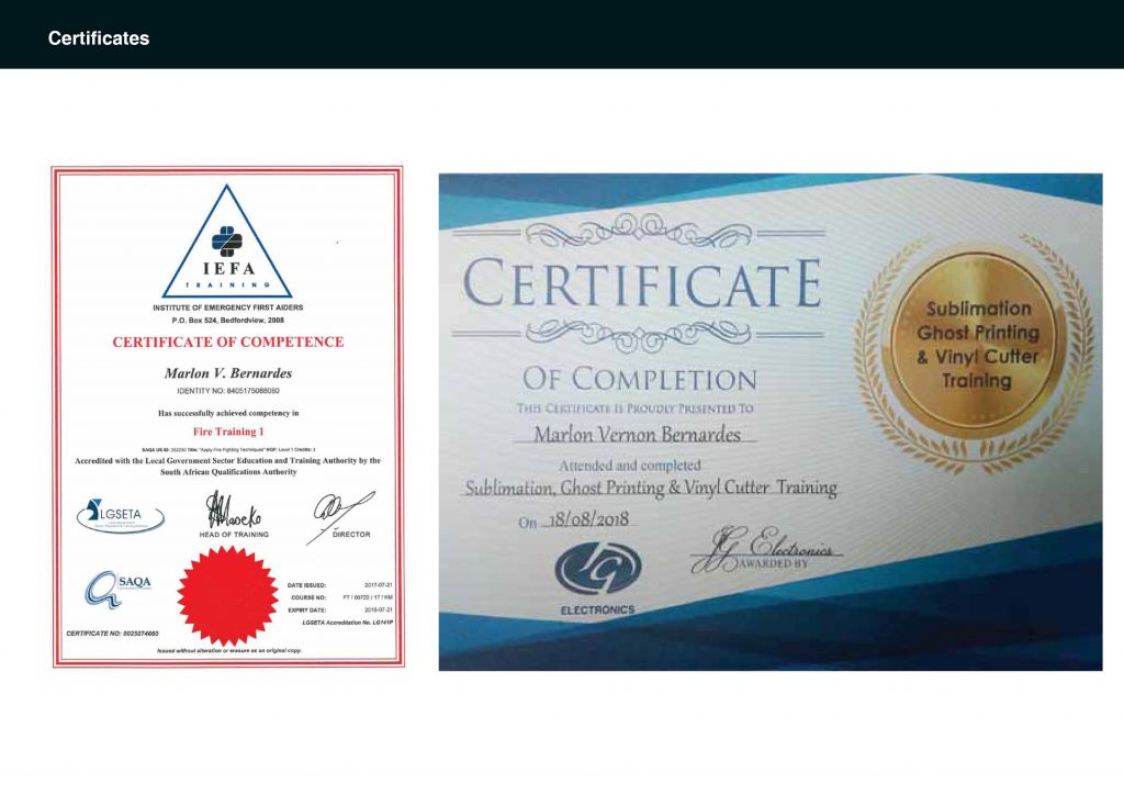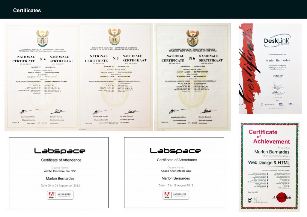 Certificate: Photography N6 (2006, Ekurhuleni East Campus) Result: Distinction received